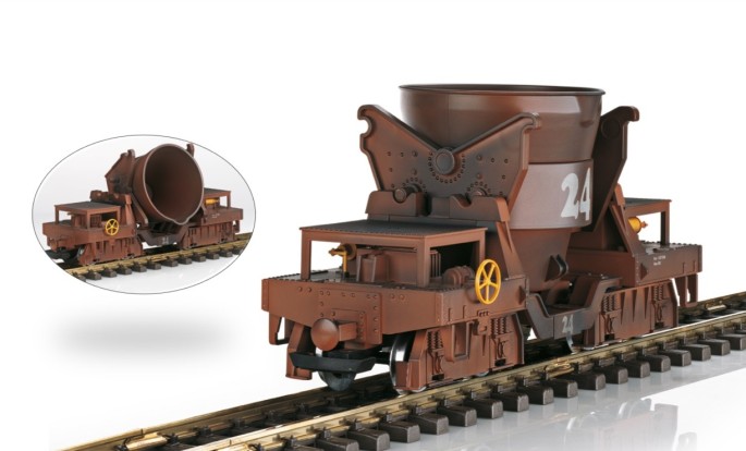 Das Modell des Schlackewagens lässt sich durch den eingebauten Motor und den Digital-Decoder zur Fernauslösung der Kippfunktion, an jedem beliebigen Ort entleeren. Die Stromaufnahme erfolgt über Kugellagerradsätze.